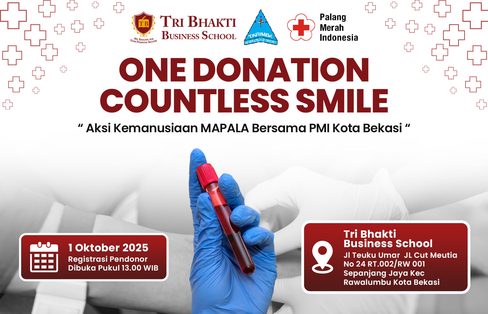 Unit Kegiatan Mahasiswa Mapala Tri Bhakti Business School bersama dengan Palang Merah Indonesia Kota Bekasi kembali menunjukkan kepedulian sosial dengan menyelenggarakan kegiatan donor darah bertajuk “One Donation Countless Smile”. Acara ini dibuka untuk seluruh civitas akademika Tri Bhakti Business School dan juga masyarakat umum. Kegiatan akan dilaksanakan pada:📆 Rabu, 1 Oktober 2025📍 Kampus Tri Bhakti...Read More